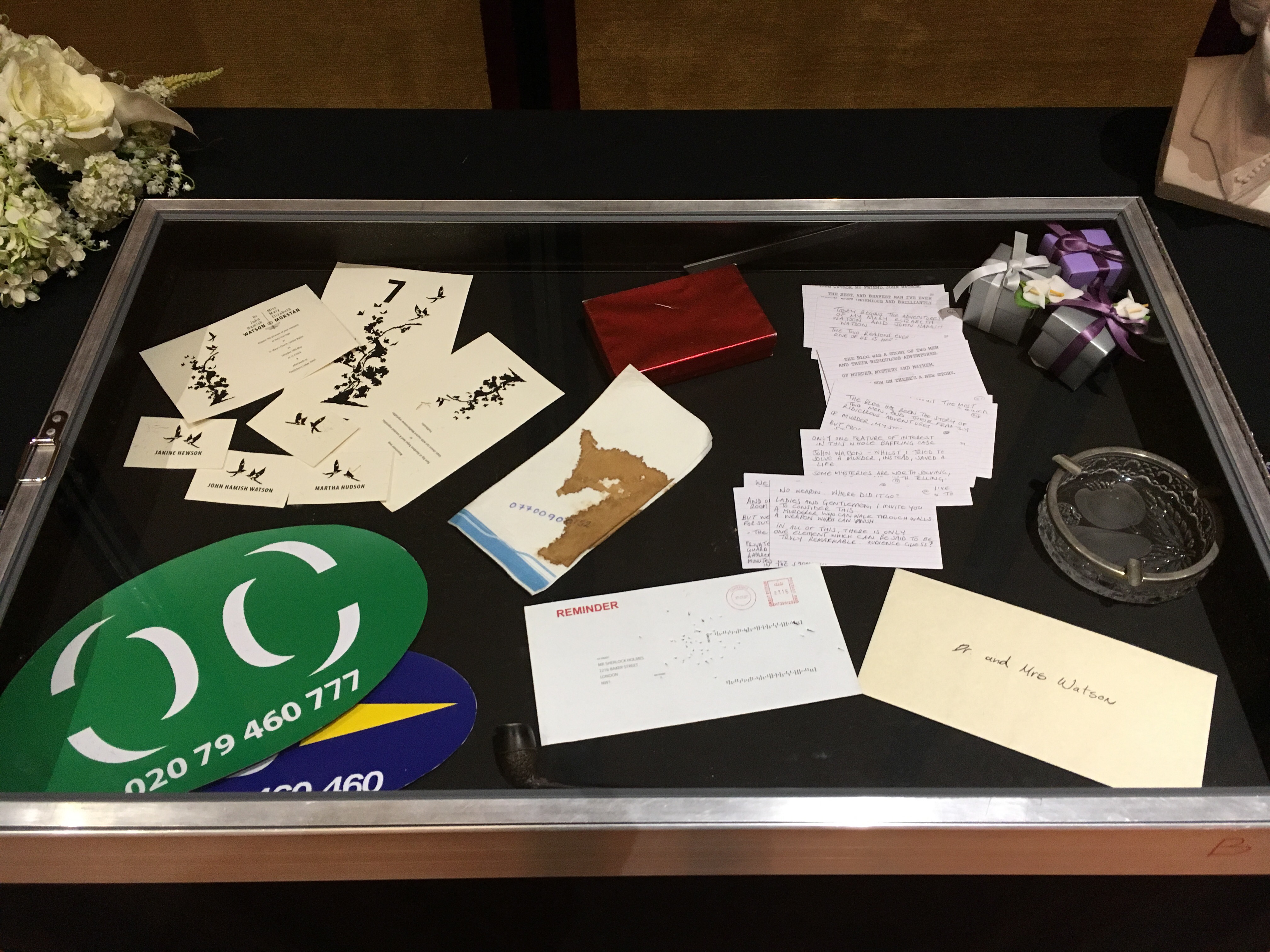 I joined the opening ceremony and visited the museum of the props that were used in the scene. It was really exciting to see the costume of Sherlock!!! I took a photo of each item displayed in the gallery to share with you (you’re welcome! lol) The set of 221B was also very interesting but I couldn’t take a selfie or they’ll charge me for that…