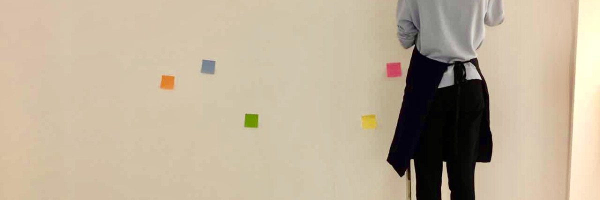 We started to prepare our exhibition space this week. I filled some holes on the wall of my exhibition wall and painted the words on the other side of the wall as the huge message board.